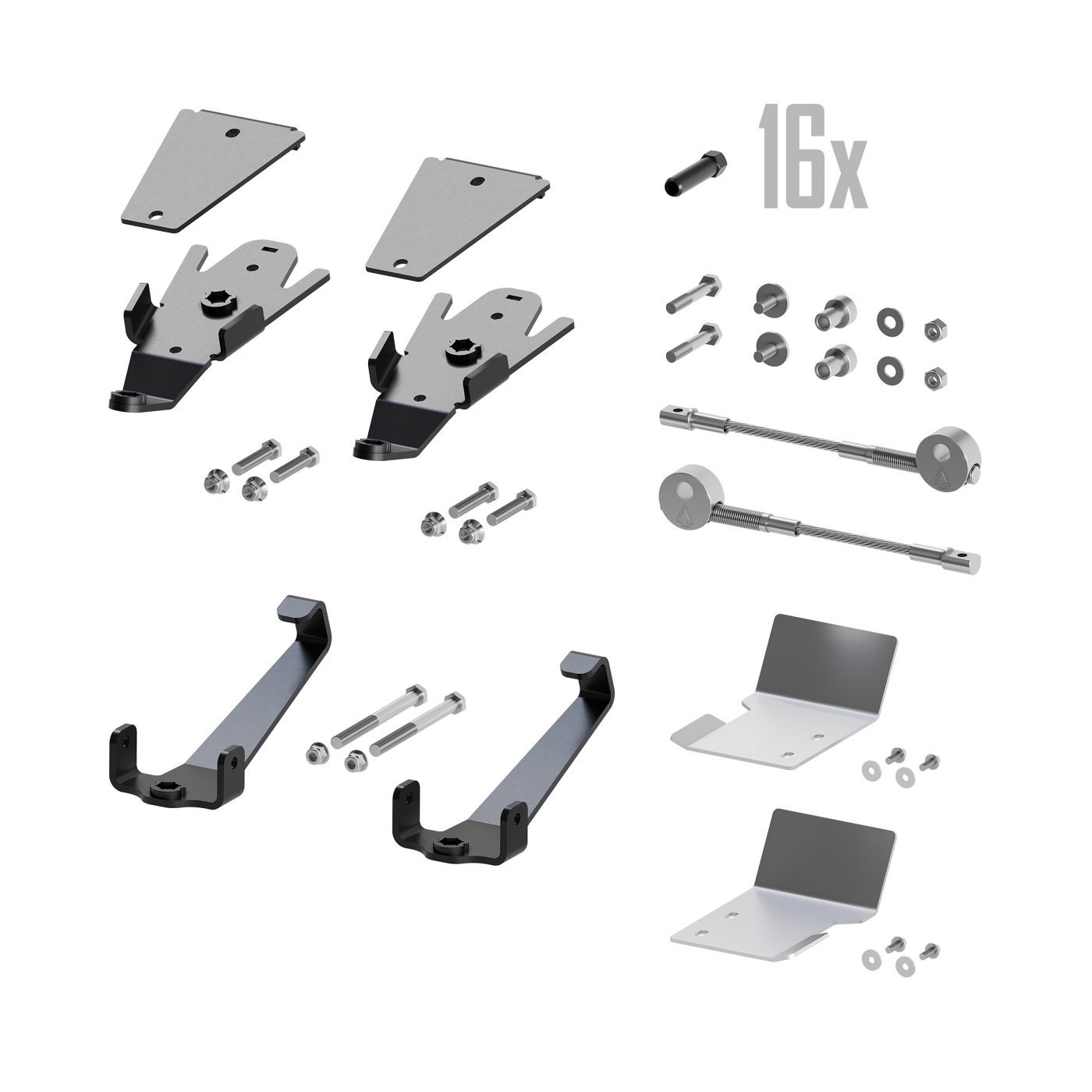Front and rear brackets, limiter cables, footrest protectors, lug nuts