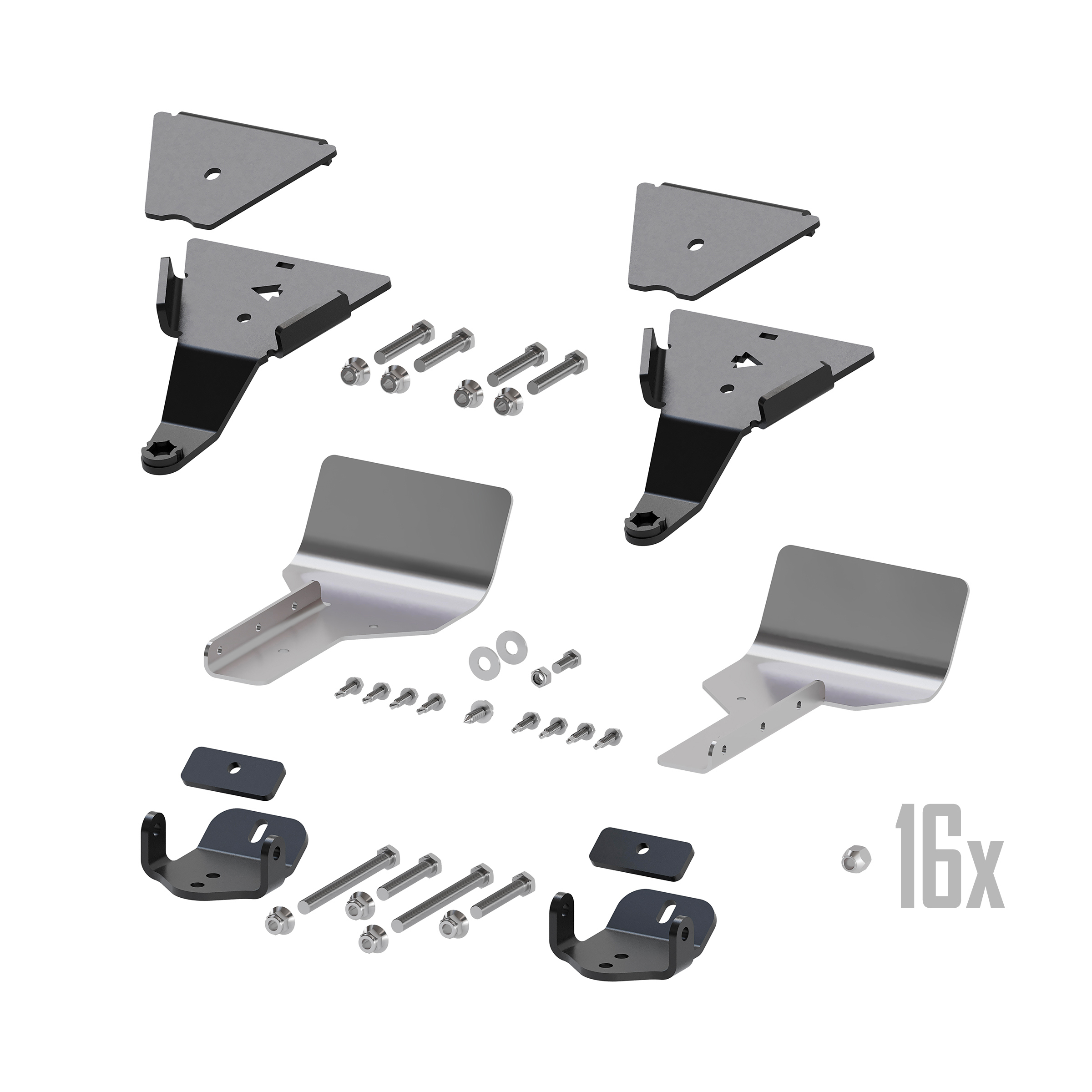 Mounting kit Rhino. Fits Rhino 660 2004-2007, Rhino 700 2008-2013. Includes front and rear brackets, footrest protector and 16 lug nuts.