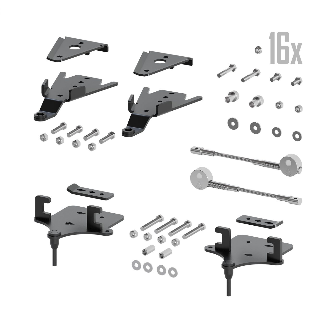 Includes front brackets, rear brackets, limiter cables and 16 lug nuts.