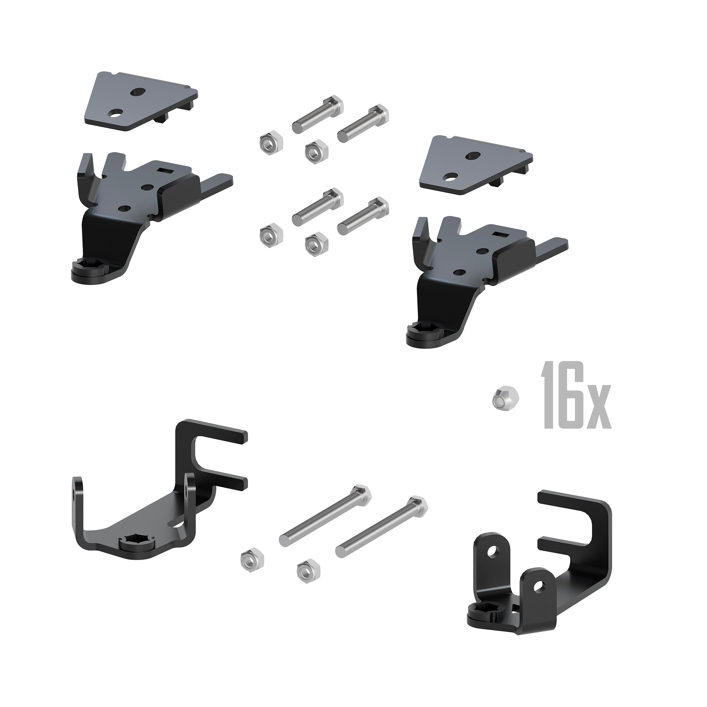 Includes front brackets, rear brackets and 16 lug nuts.