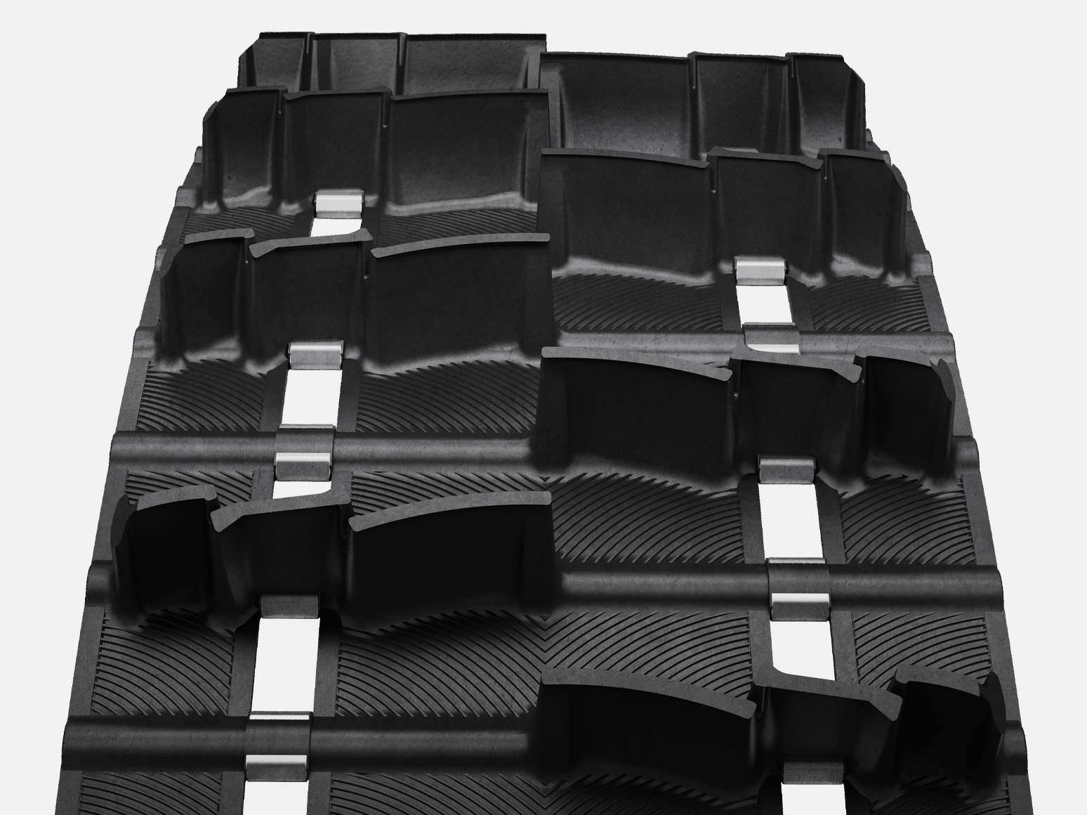 Angular lugs bite big and funnel snow under snowmobil for outstanding flotation.