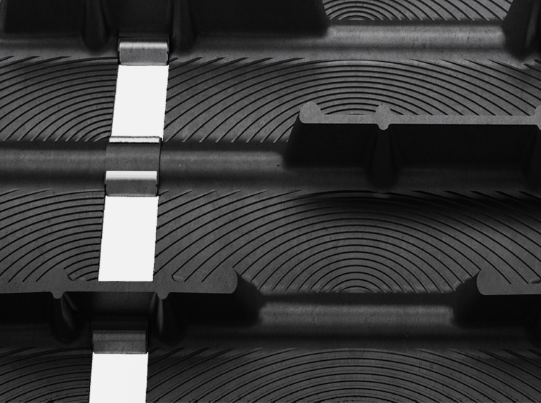 Conception arquée des profils avec disposition décalée inspirée du snocross afin d'offrir excellente traction sur la neige molle.
