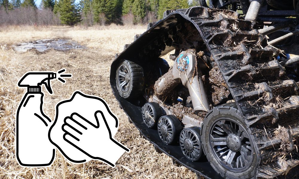 Il est possible que la boue, la poussière, l’eau et l’humidité peuvent avoir un impact sur les pièces mobiles de tes systèmes de chenilles pendant la période d’entreposage. La corrosion peut parfois même s’y installer. C’est pourquoi c’est le moment parfait pour effectuer un entretien complet au niveau des systèmes de chenilles pour prolonger le plaisir de les utiliser dans tes prochaines aventures. Voici les étapes à suivre avant l’entreposage:
