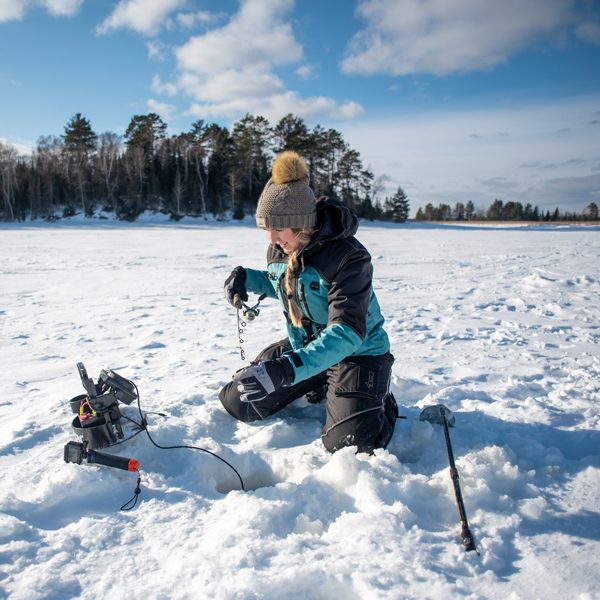 La pêche sur glace peut sembler intimidante au début, mais une fois qu’on sait comment faire, c’est très facile. Même quand il s’agit de faire des trous dans la glace. L’équipement d’aujourd’hui est léger, donc les femmes peuvent le faire facilement par elles-mêmes.
