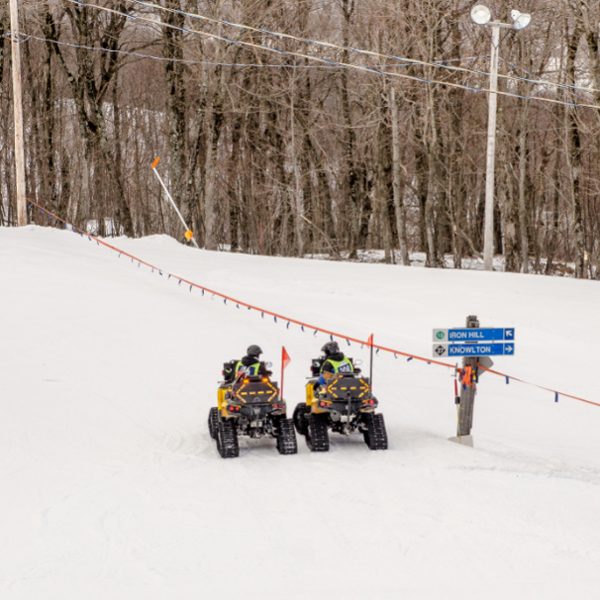 Thibodeau: La sécurité des skieurs et des planchistes est vraiment importante pour nous, et c’est un des principaux avantages des VTT et côtes à côtes. Par rapport aux motoneiges, ils sont bien plus agiles, vont moins vite et sont plus faciles à contrôler. De plus, ces véhicules sont conçus pour travailler et fonctionnent bien même dans les pires conditions. Le deuxième avantage qui me vient à l’esprit est leur polyvalence. Nous pouvons utiliser les VTT et VCC toute l’année : avec un système de chenilles les deux tiers de l’année, de novembre à mai, et sur des roues l’été. Les motoneiges, quant à elles, peuvent seulement être utilisées l’hiver. Ce sont aussi de bons véhicules, mais ils sont tout simplement moins polyvalents. Le troisième avantage que nous avons remarqué est leur efficacité. Depuis que toute notre flotte a été remplacée par des VTT et VCC, notre consommation d’essence a nettement réduit, même chose pour les frais d’entretien et le coût d’exploitation. Le dernier avantage pour moi est l’accessibilité, et c’est un gros avantage. On peut littéralement aller n’importe où, sur des pentes abruptes avec de la neige profonde, des pistes glacées, et même sur des sentiers boueux au printemps. Nous pouvons couvrir toute la montagne sans endommager le terrain tout en assurant la sécurité du personnel et des clients.