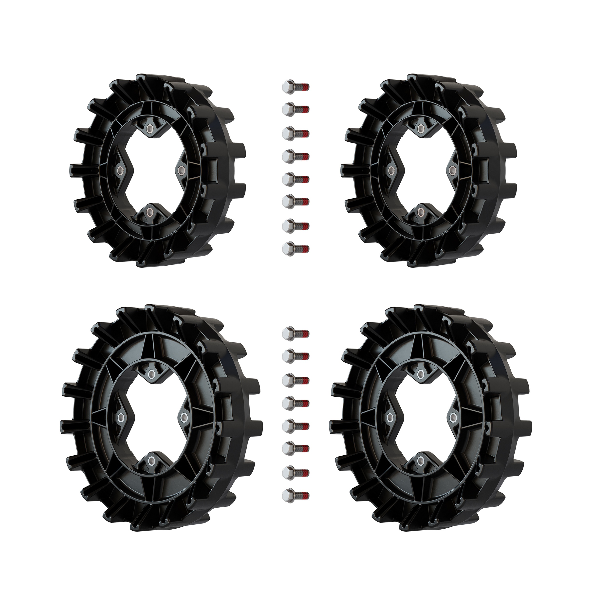Systèmes de chenilles installés sur les véhicules avec un modèle à 4 boulons et un rapport de transmission de 15 dents et 17 dents.